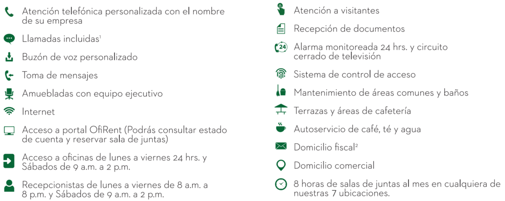 Accede directamente a una oficina completamente amueblada con todos los servicios de comunicación, áreas de esparcimiento y asistencia integral. Así podrás enfocarte directamente en hacer crecer tu negocio.